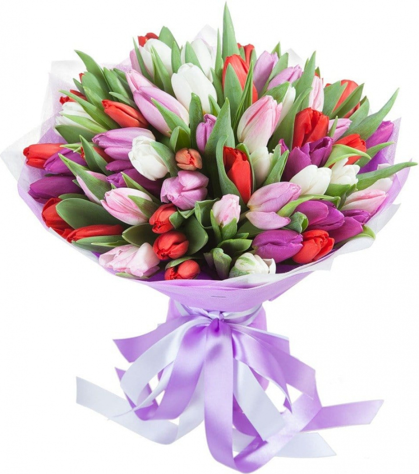 Фантастичная композиция в великолепном сочетании красных, белых, розовых и сиреневых тюльпанов доставит огромное удовольствие человеку, которому будет преподнесена. Букет подарит красочное разнообразие положительных эмоций  - радость и жизнелюбие, надежды и теплоту души, искреннюю любовь и счастье.